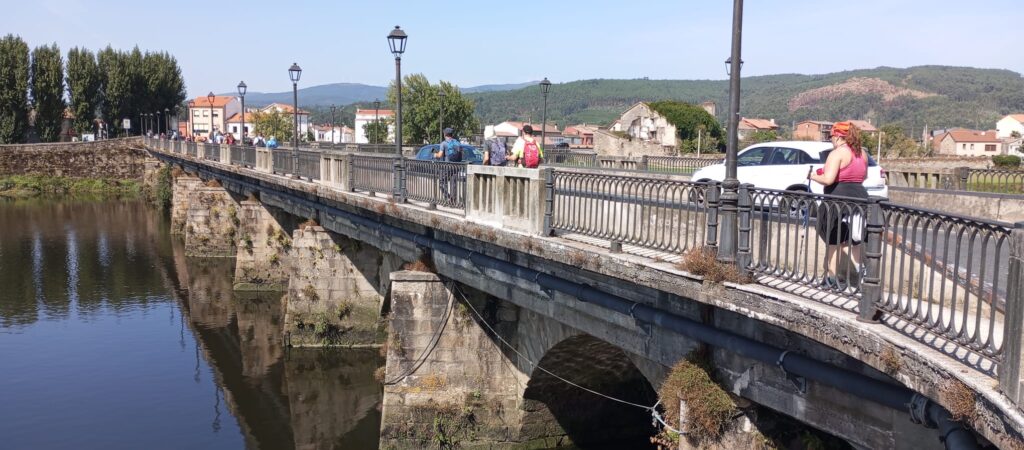 El albergue ofrecía desayuno, pero preferimos el pulso vivo del pueblo: ese contacto con la gente, el café servido con sonrisa, y el “¡Buen Camino!” que se vuelve pan y alimento para el alma. Una pequeña confitería junto a la iglesia fue nuestro rincón elegido. Peregrinos, pocos. Trabajadores, muchos. Pero allí estaba la esencia: la Galicia madrugadora, amable y silenciosa, regalándonos un comienzo perfecto.