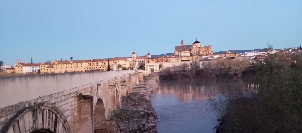 Caminar desde el Eurostars Los Patios hacia el río es un lujo para los sentidos cuando la ciudad aún duerme. Al llegar al Puente Romano, el premio fue una bofetada de belleza: el Guadalquivir fluyendo con su rumor constante, la Torre de la Calahorra recortada contra el primer resplandor y la Mezquita-Catedral empezando a reflejar esa luz dorada que te deja, literalmente, al borde de la lágrima.