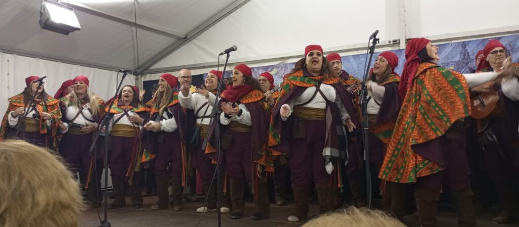 Tras la cena, nos dejamos llevar por el desfile de comparsas y chirigotas. La plaza central se convirtió en un escenario de risas, rimas afiladas y una alegría contagiosa que solo el carnaval andaluz sabe transmitir. Brindamos de nuevo, esta vez por la vida y por la capacidad de esta ciudad de ser mística y divertida al mismo tiempo.